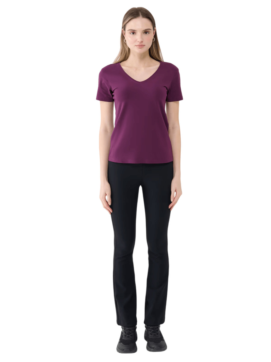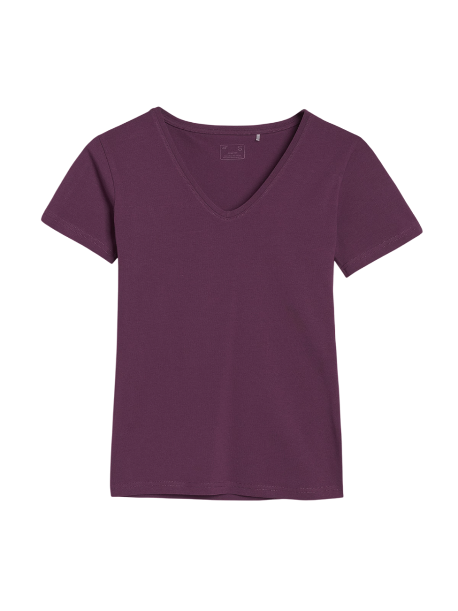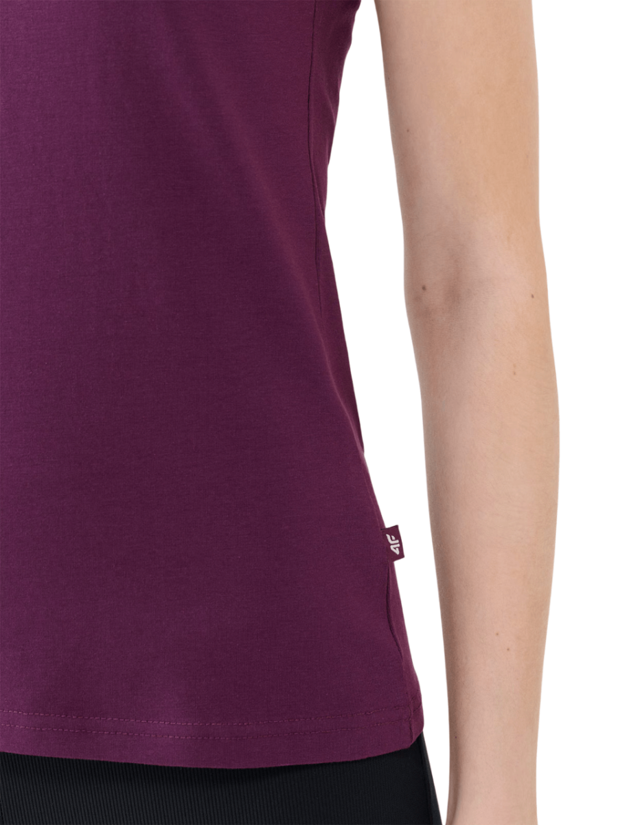 The 4F women’s T-shirt has a slim fit that fits the body and a standard length that extends to the hips.