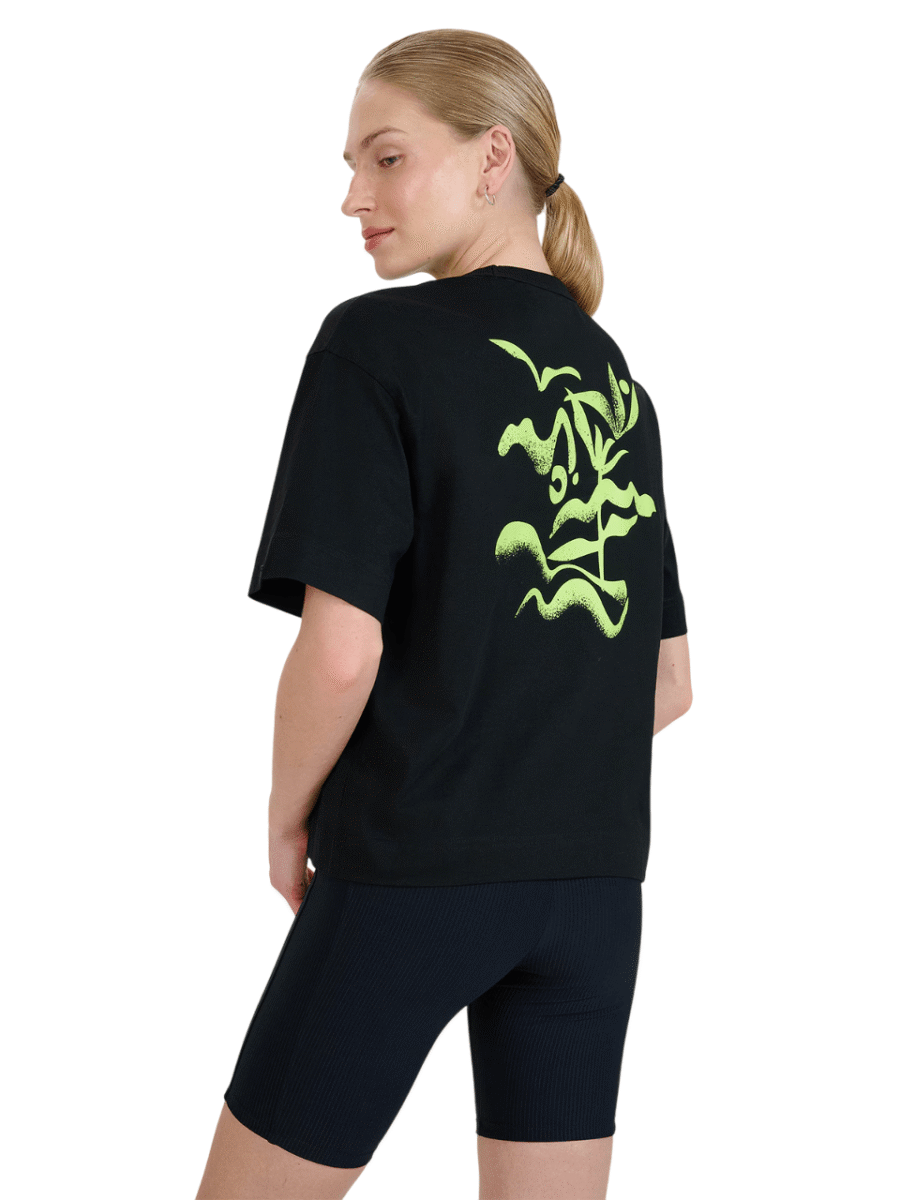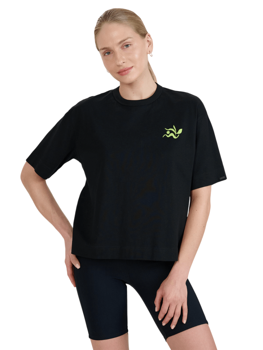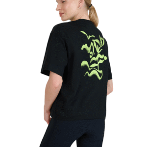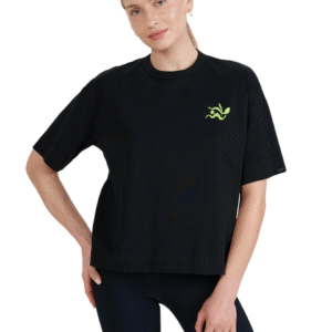 The elegant round neckline and short sleeves add elegance, while the graphics on the chest and back give a unique character.