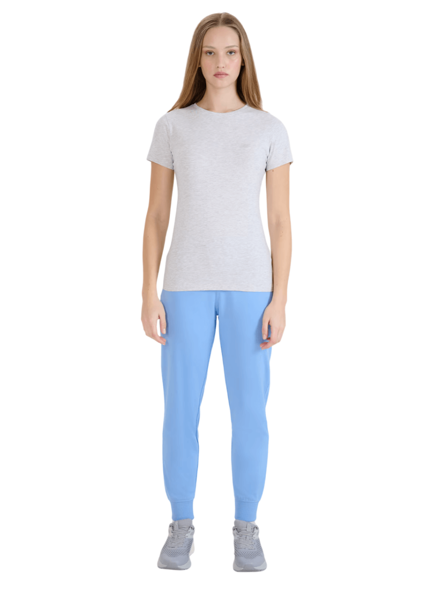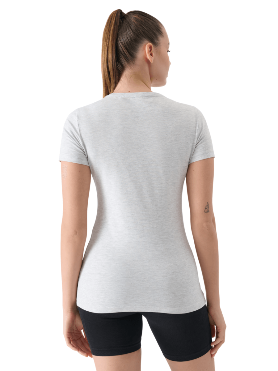 The 4F women’s T-shirt has a slim fit that fits the body and a standard length that extends to the hips.