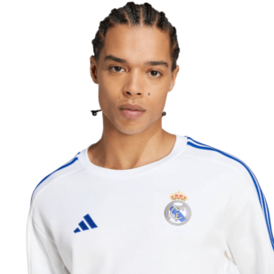 Perfect for fans who want to combine style and comfort, this shirt is made from soft, high-quality fabric that provides all-day warmth and comfort. With a classic round neck design and relaxed fit, it provides a comfortable feel for any occasion. The crisp white colorway is accented with the iconic Real Madrid crest on the chest and subtle adidas branding to emphasize your team affiliation. Whether you’re heading to a match, training or just out and about, the adidas Real Madrid DNA Crew Shirt combines functionality, comfort and team spirit. The elastic waistband and elastic cuffs on the sleeves ensure a flawless fit.