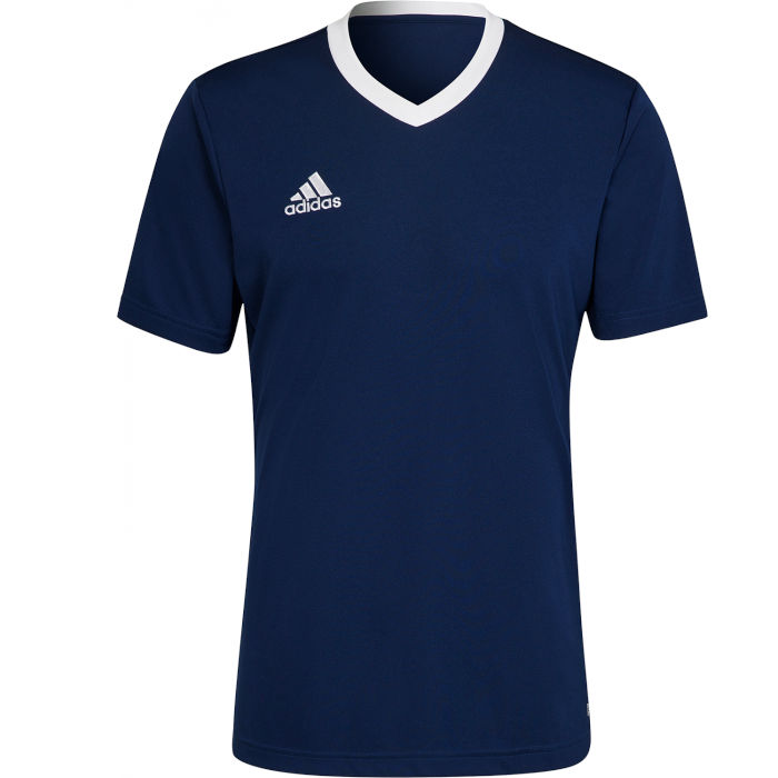 Dizajn iz kolekcije Entrada 22 predstavljen je u plavoj verziji, koja daje širok raspon mogućnosti za nadopunu sportskih kombinacija. V-izrez i vez logo nadopunjuju bezvremenski nogometni izgled.