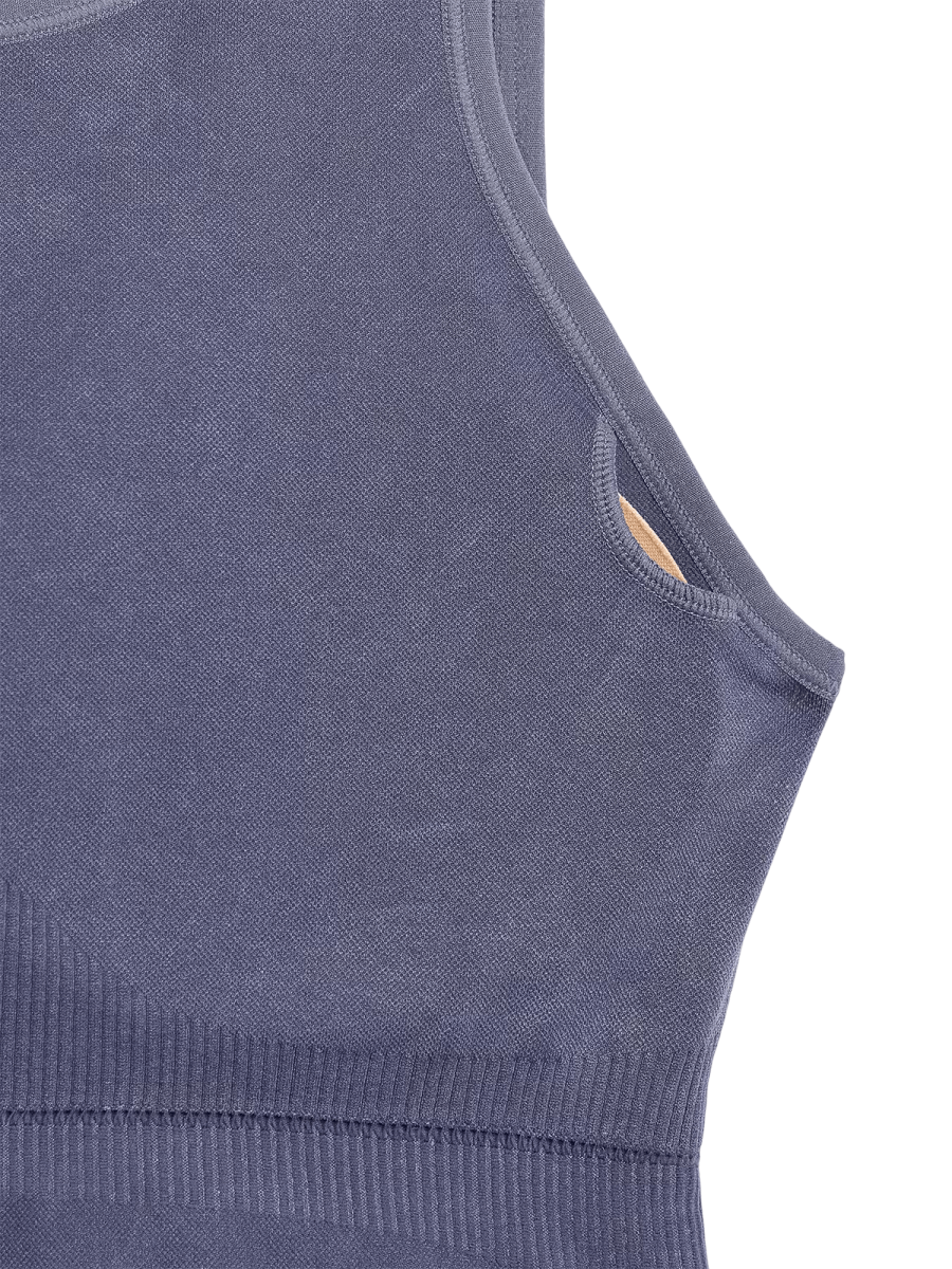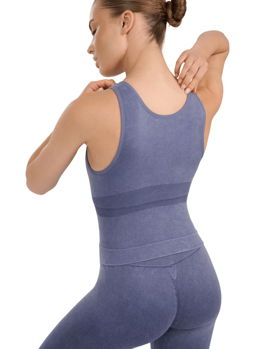 Dvoslojna konstrukcija z nizko oporo združuje funkcionalnost in udobje – zgornji del ima vgrajen modrček z mehkimi, snemljivimi košaricami in stabilizacijskim pasom pod prsmi.