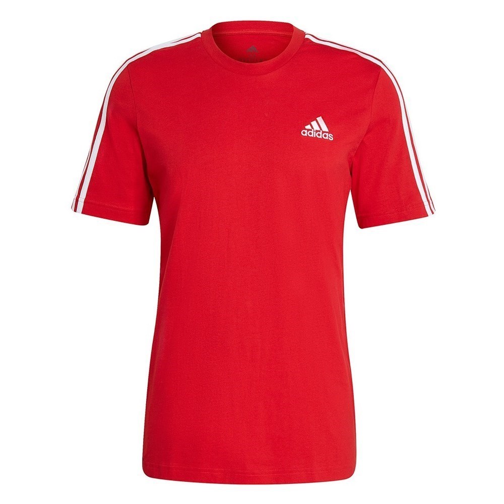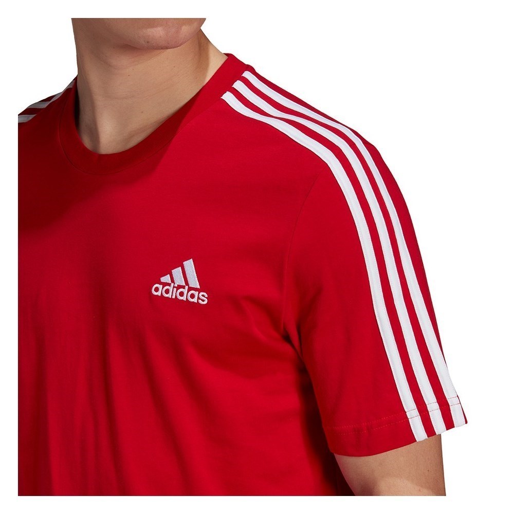 Detajli, kot so tri značilne črte na rokavih in izvezen uradni adidasov logotip, dajejo majici športen videz.