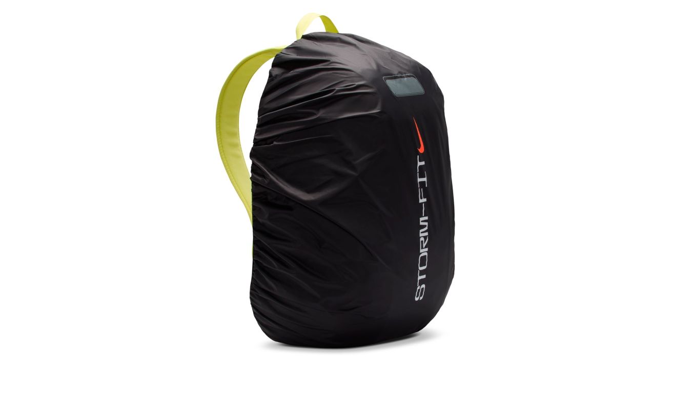 Nike dežni nahrbtnik ima tehnologijo Nike Storm-FIT, ki zagotavlja dodatno zaščito pred vremenskimi vplivi, mrežasti del na torbi pa omogoča zračnost in prezračevanje v lepih dneh.