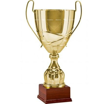 Pokal za vse vrste tekmovanj, eleganten z ročkami, zlate barve, podstavek v rjavi barvi, višina 54 cm, fi 22 cm.