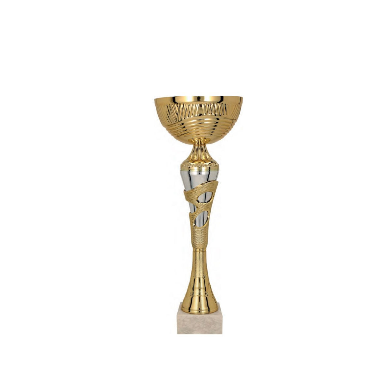 Pokal za vse vrste tekmovanj, v zlato-srebrni barvi, podstavek v bež barvi, višina 29,5 cm, fi 10 cm.