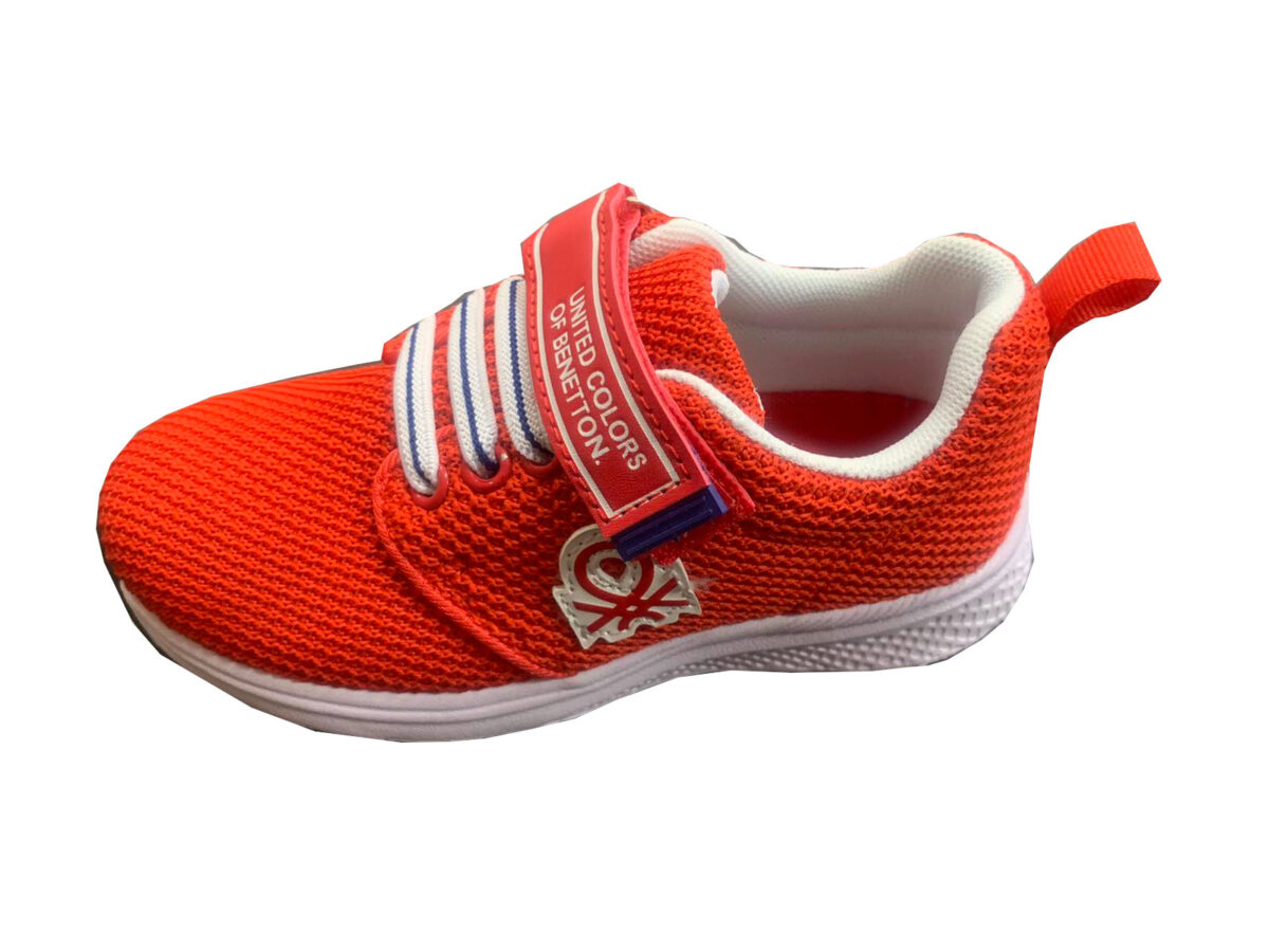 United Colors of Benetton otroške superge, modernega dizajna v rdeči barvi z belimi detajli in logotipom ob strani.